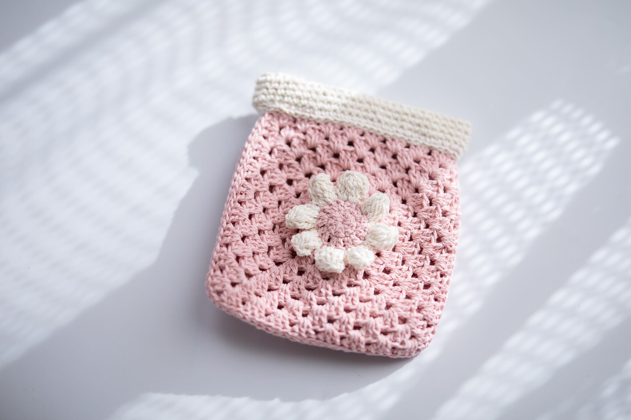 立体なお花柄のバネ口ポーチです。