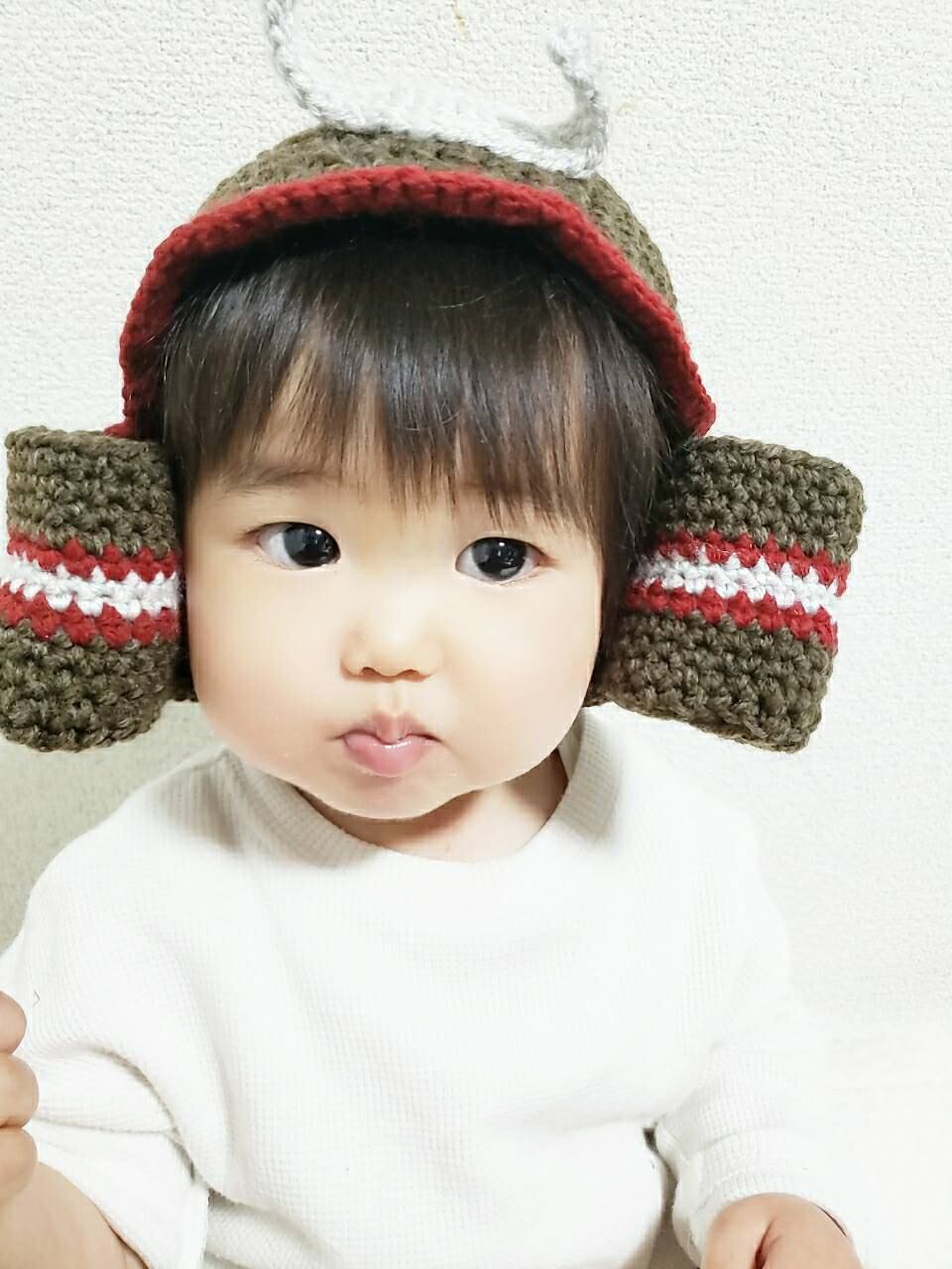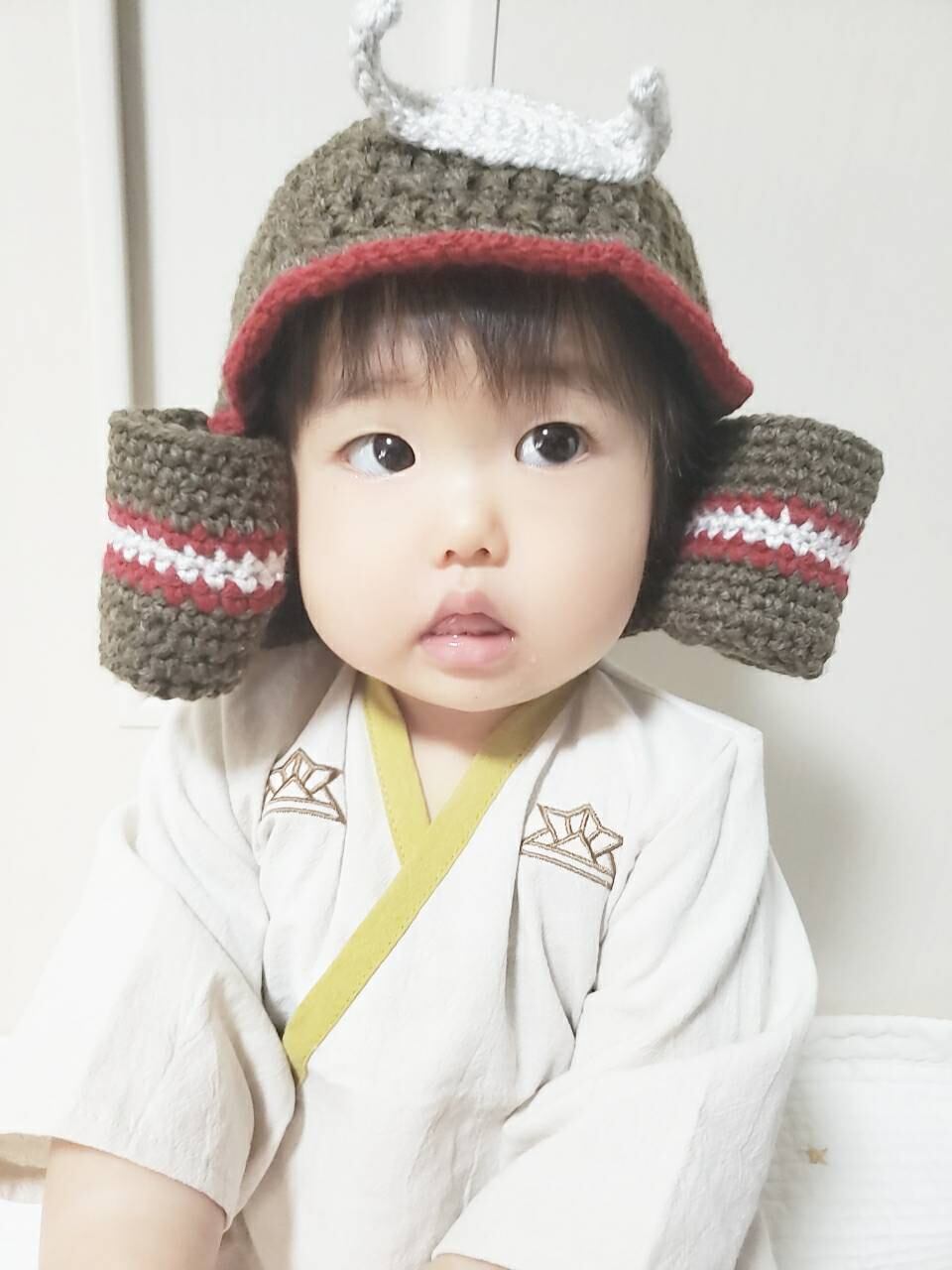 こどもの日にぴったりな毛糸で作った兜です!